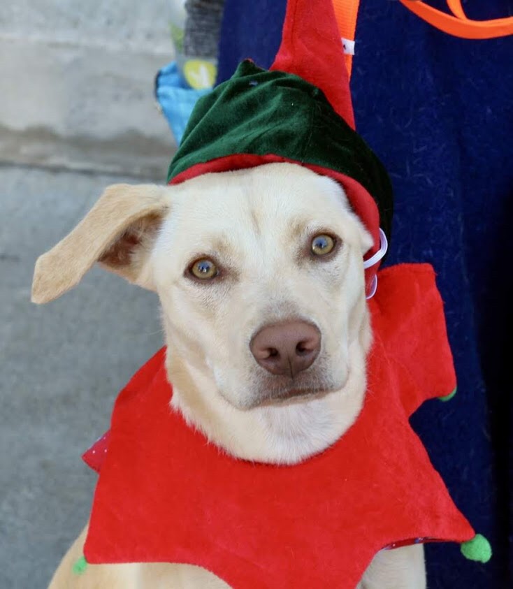 At the meet & greet, I looked at lots of dogs, some scared, others bored, all with a handler. One small white one was trying to hide from the crowd around her, another very small yellow dog was posing for pictures in an elf costume. “Bambi,” the sweet old girl I fell in love with on the rescue organization’s website, wouldn’t even look at me, so I went back to check out all the other dogs again.